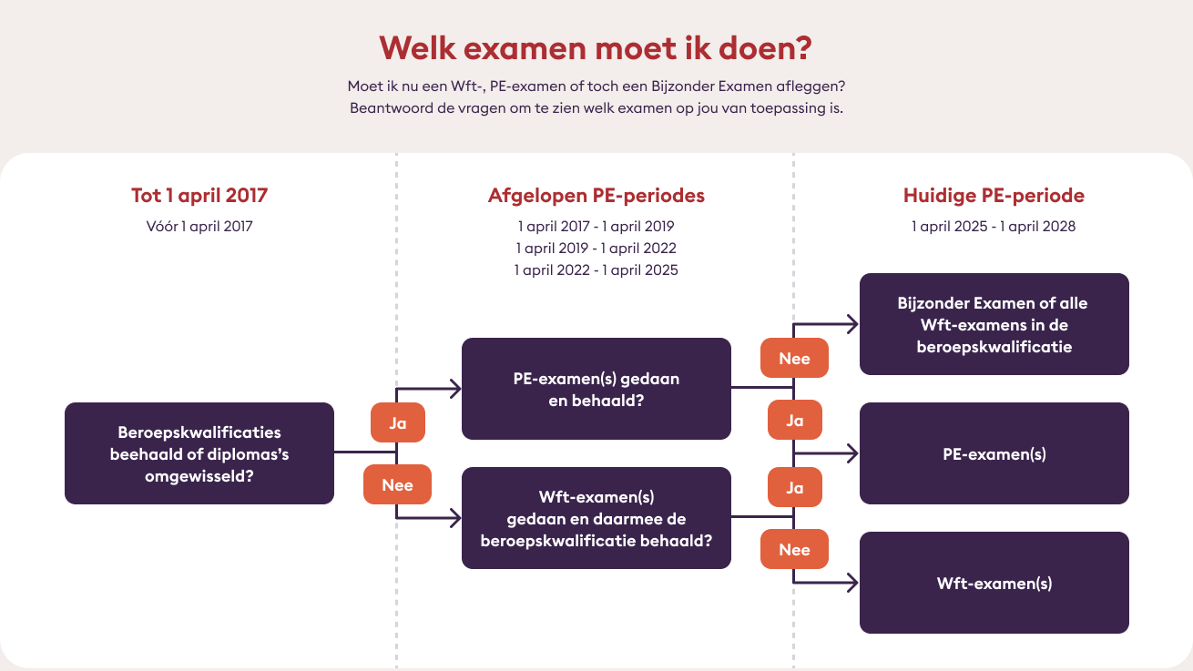 Tip: Check of je het PE-examen hebt behaald in de vorige PE-periode 1 april 2022 tot 1 april 2025. Zo ja, lever deze bij ons aan door deze te uploaden op je Dashboard, je hoeft geen Bijzonder Examen af te leggen.
